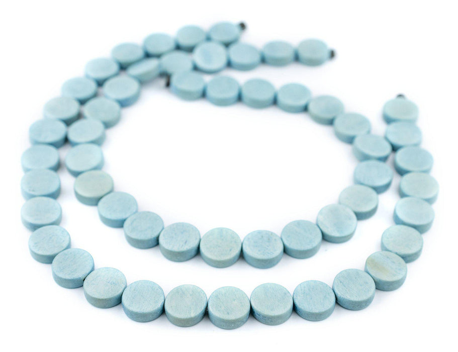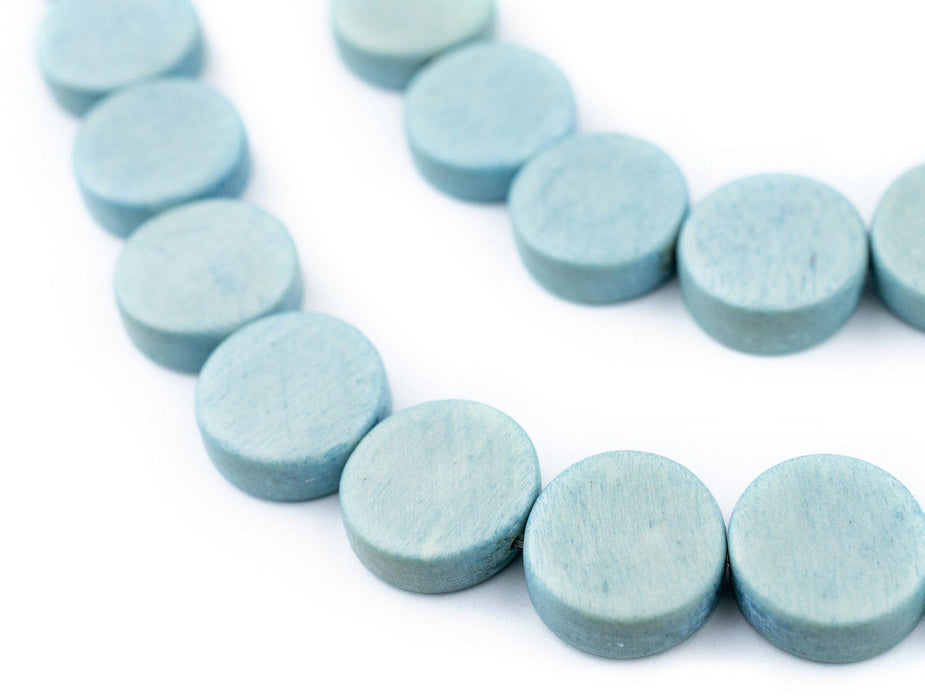 Light Blue Circular Natural Wood Beads (15x15mm)