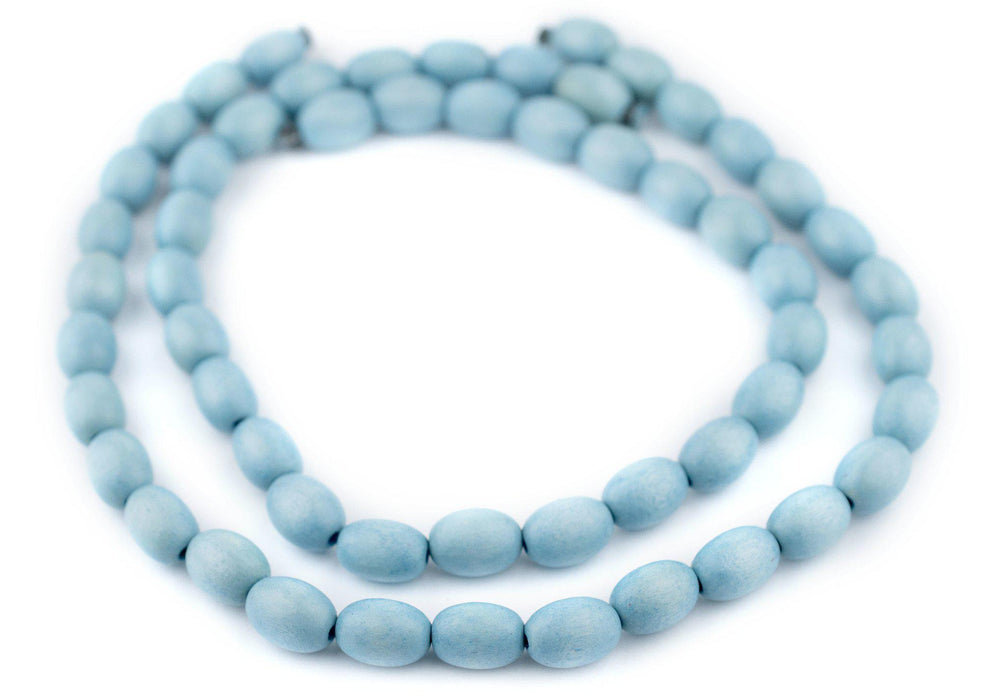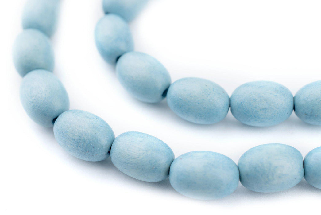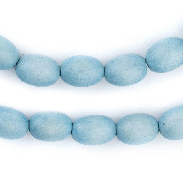 Light Blue Oval Natural Wood Beads (15x10mm)