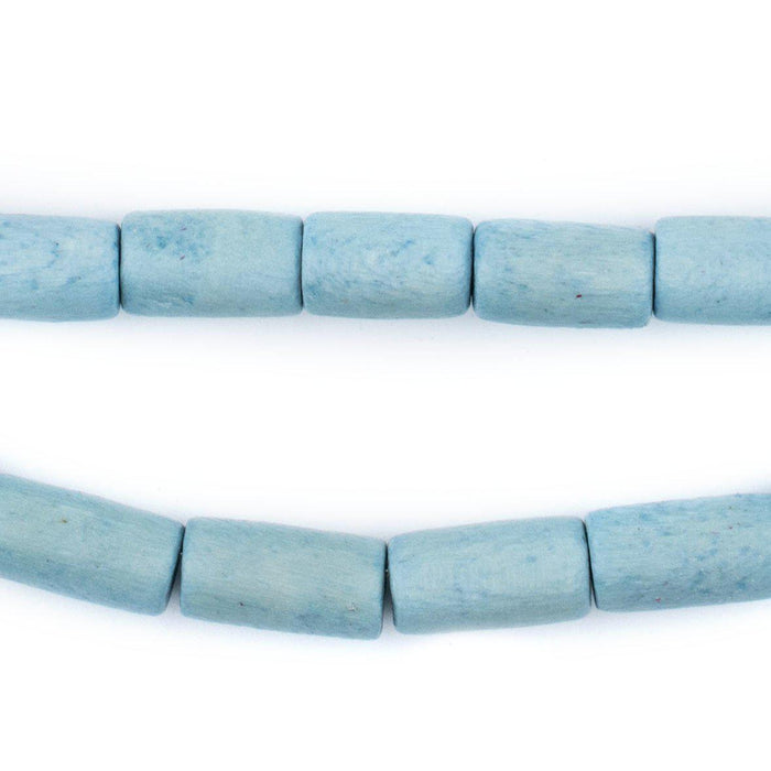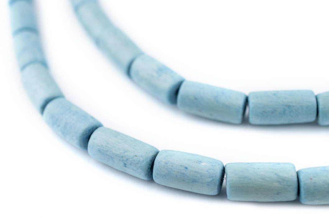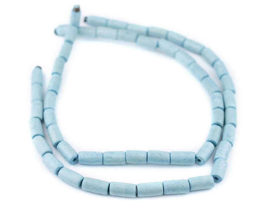 Light Blue Tube Natural Wood Beads (15x8mm)