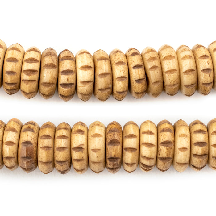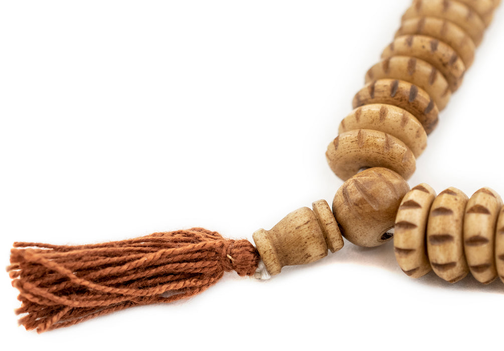 Light Brown Carved Disk Bone Mala Beads (14mm)