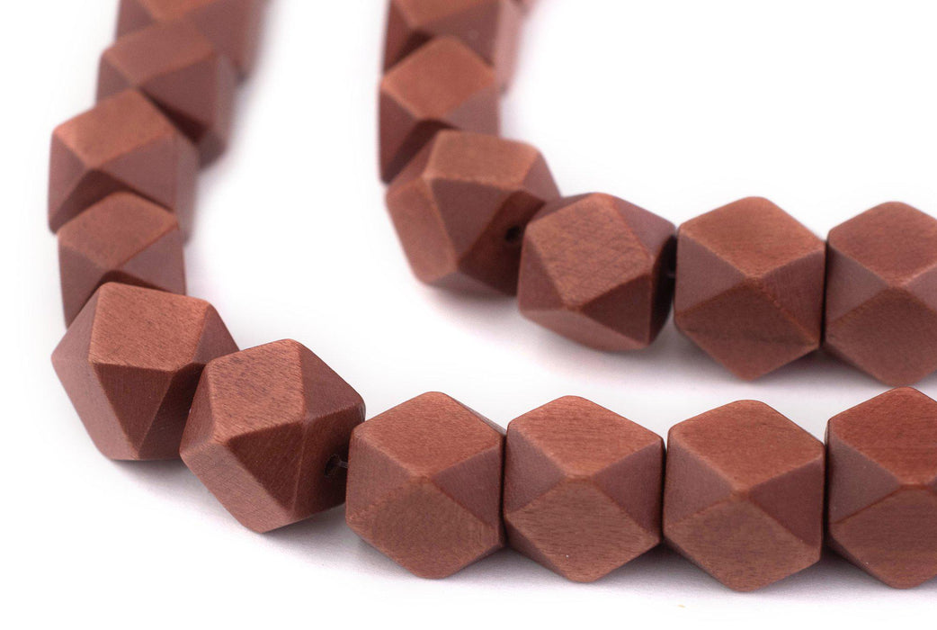 Light Brown Diamond Cut Natural Wood Beads (12mm)
