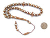 Evocative of a lost world, these beautiful Arabian prayer beads have been handcrafted by a master artisan. Look carefully and you will see that each bead has been exquisitely inlaid in meticulous detail, a quality of work hard to find in today’s day and age. The refined quality of these beads belies the long journey they have traveled through the back alleys and markets of North Africa. Prayer beads such as these embody the intersection artistic expression and faithful devotion that are a cornerstone of the Islamic world. Each bead on this strand measures approximately 8 x 8-9mm with hole size of 1mm and strand length of 18" long. Metal inlay may not be sterling. Use as-is or to accent your beaded creations. Limited Supply. Get yours today!