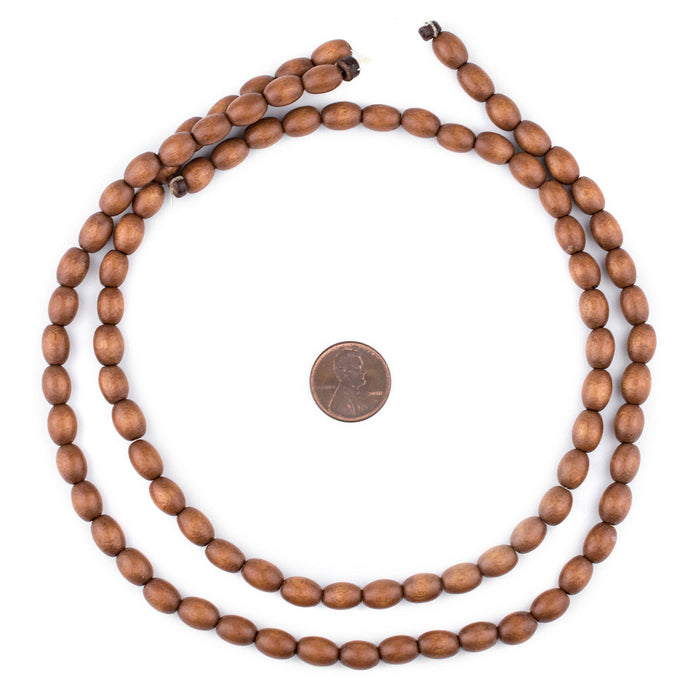 Light Brown Oval Natural Wood Beads (9x6mm)