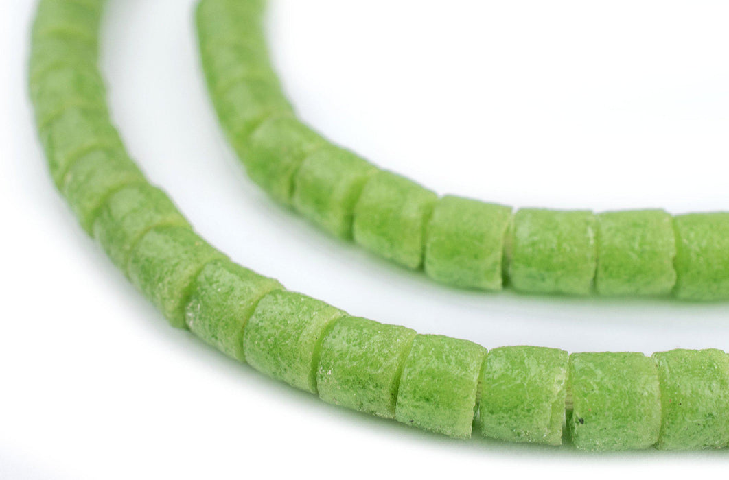 Checkout this beautiful strand of African sandcast. The process of making these beads is unique to Africa and has been used for over 1000 years. Pulverized glass of various colors is poured into a clay mold, using a cassava stem for the bead's hole. The mold is placed in a furnace and heated until the glass particles congeal without actually melting and the stem burns out. The Ghanaians have been making beads in this manner since the 1600s. Beads measure 9-10mm in diameter.