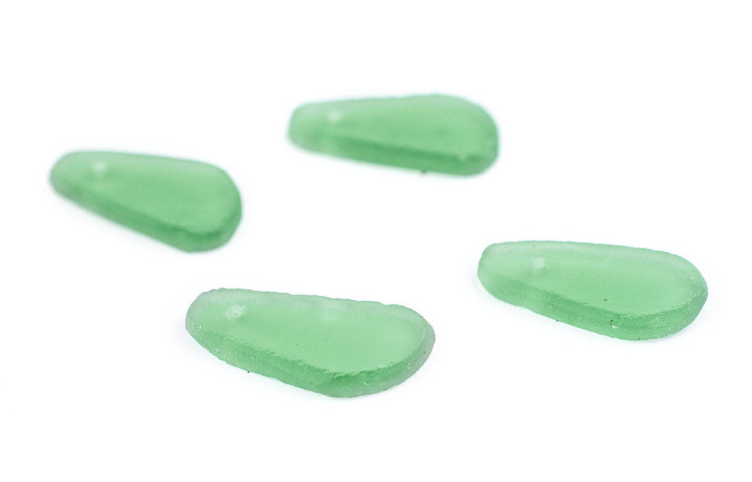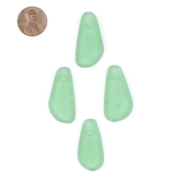 Light Green Sea Glass Teardrop Pendants (Set of 4)