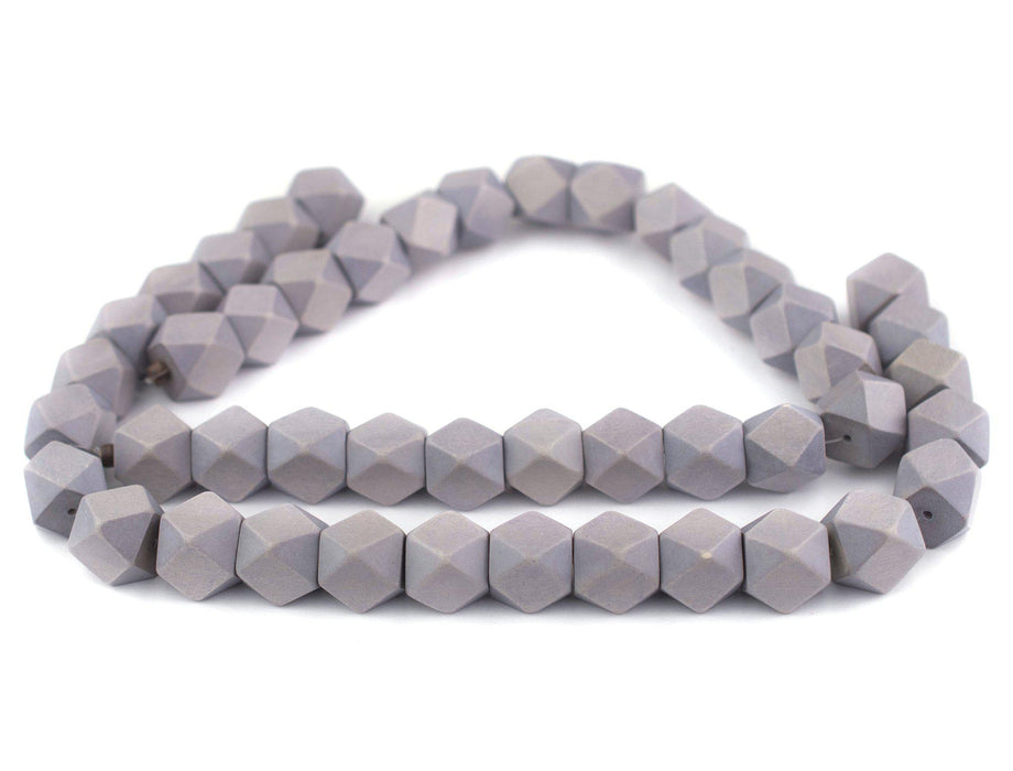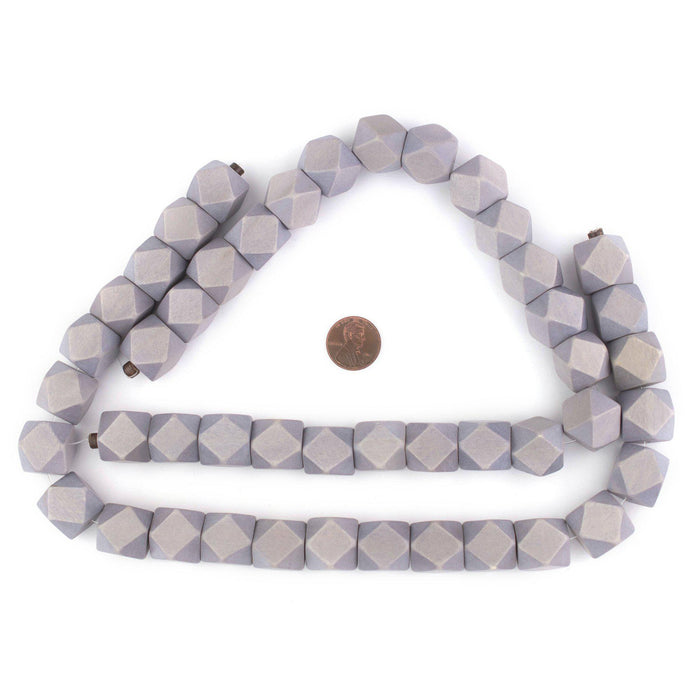 Light Grey Diamond Cut Natural Wood Beads (17mm)