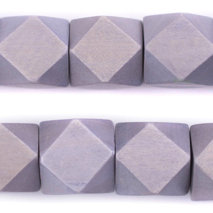 Light Grey Diamond Cut Natural Wood Beads (20mm)