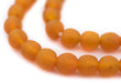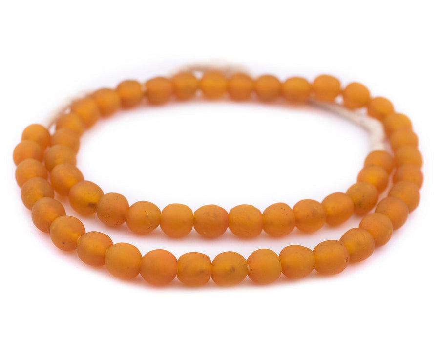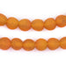 Recycled glass beads are a type of indigenously produced African bead from Ghana West Africa. These beautiful mango orange color recycled beads are made using an old method that has been used for centuries. The glass itself is derived from a variety of recycled sources including old beverage and medicine bottles. The procedure for making the beads consists of a number of steps whereby powdered glass is poured into molds of clay and baked in a specialized oven. These beads are produced in large part by the Krobo tribe and through recycling glass are environmentally friendly. Each bead measures approximately 11 x 11mm with a hole size of approximately 2-3mm. You will receive a full strand measuring approximately 28".