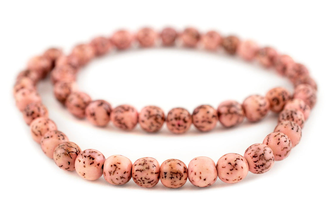 These striking beads are handmade using salvaged palm tree seeds. The slight variations in colors and shape of the beads will make them a fun addition to your beading project. Look carefully and you will see that each bead is unique. Each bead measures approximately 8 x 8mm, with a hole size of approximately 1mm. You will receive one strand measuring approximately 16". There are around 48 beads on each strand. Use them as spacers or accent beads. The rustic character of these beads is sure to add an authentic touch to your jewelry designs!