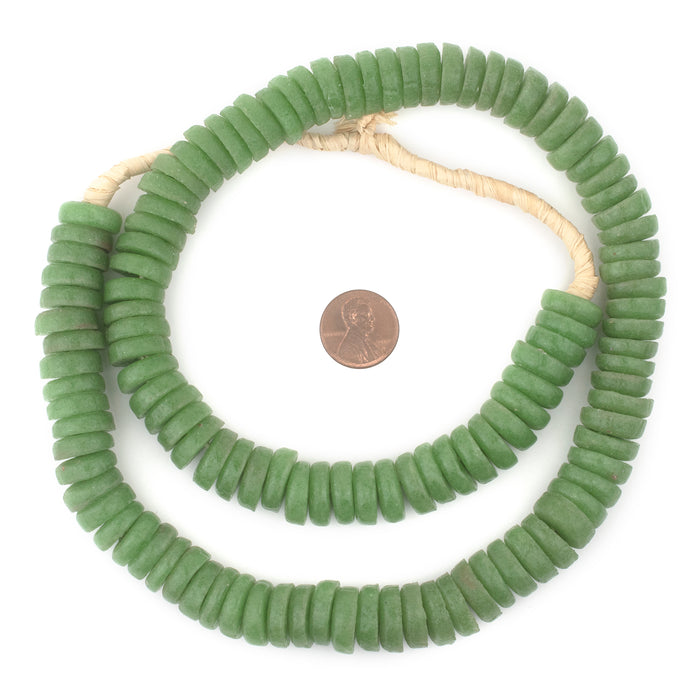 Lime Green Ashanti Glass Disk Beads (14mm)