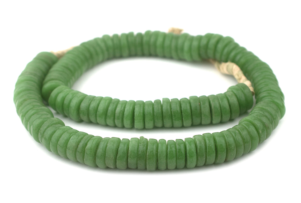 Lime Green Ashanti Glass Disk Beads (18mm)