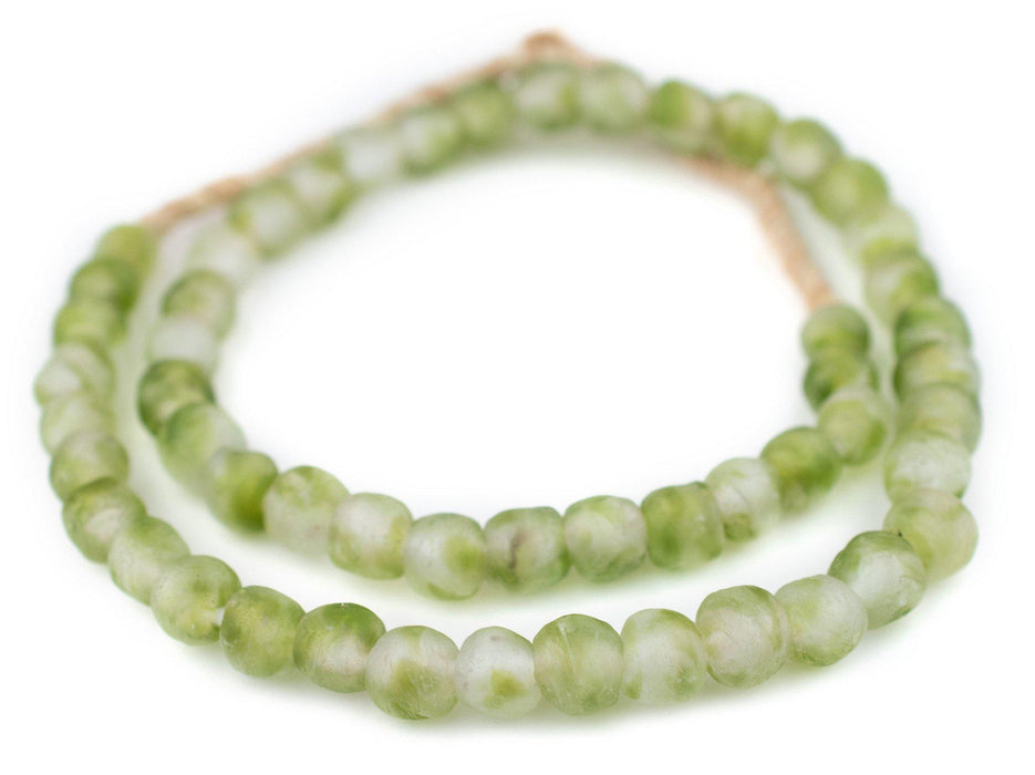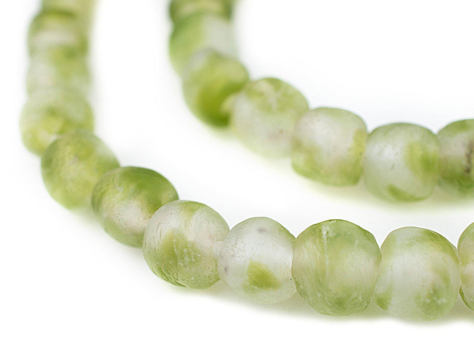 Lime Green Swirl Recycled Glass Beads (11mm)