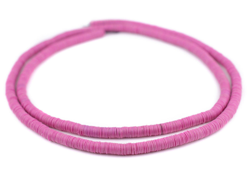 Take a look at this beautiful strand of red African vinyl beads. Beads such as these are found in Ghana and Nigeria where they are sometimes worn as waist beads. Older versions of vinyl beads were said to be made from recycled phonograph records. This strand measures approximately 33" with individual beads measuring approximately 0.28 x 6mm. These beads are light, fun to wear and also versatile for jewelry designs. Each strand is sold individually.