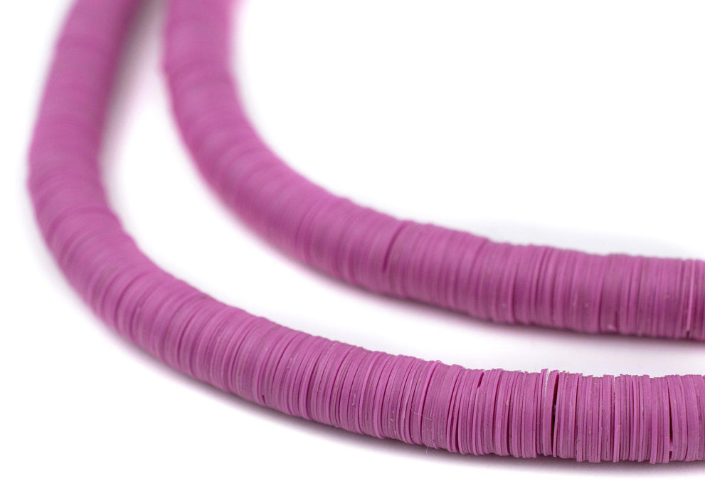 Take a look at this beautiful strand of African vinyl beads in a green color. Beads such as these are found in Ghana and Nigeria where they are sometimes worn as waist beads. Older versions of vinyl beads were said to be made from recycled phonograph records. This strand measures approximately 34 inches long with individual beads measuring approximately 0.28 x 8mm, and a hole size of approximately 1mm. These beads are light and fun to wear and also versatile for jewelry designs. Each strand is sold individually. Available in a variety of sizes and colors. Mix and match to create your own medley!