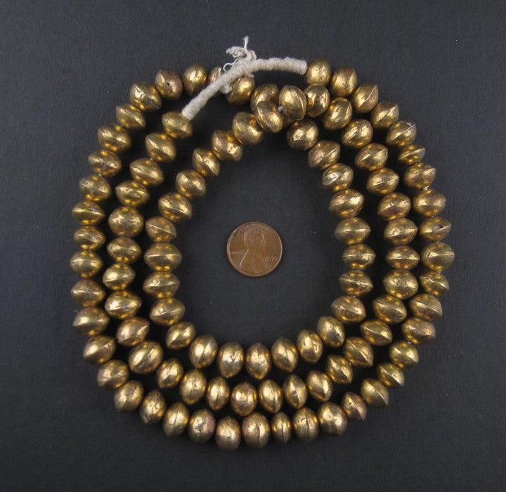 Here is a beautiful strand of Mali Brass Beads from Africa. The strand is an extra long 36", with beads measuring 12mm in diameter and 9mm wide.
