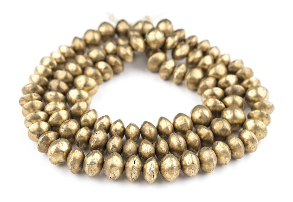 Here is a beautiful strand of Mali Brass Beads from Africa. The strand is an extra long 38-40", with beads measuring approximately 13-15mm in diameter and 9mm wide. Individual beads may show some wear such as small nicks due to age and time and a few beads may be more damaged.