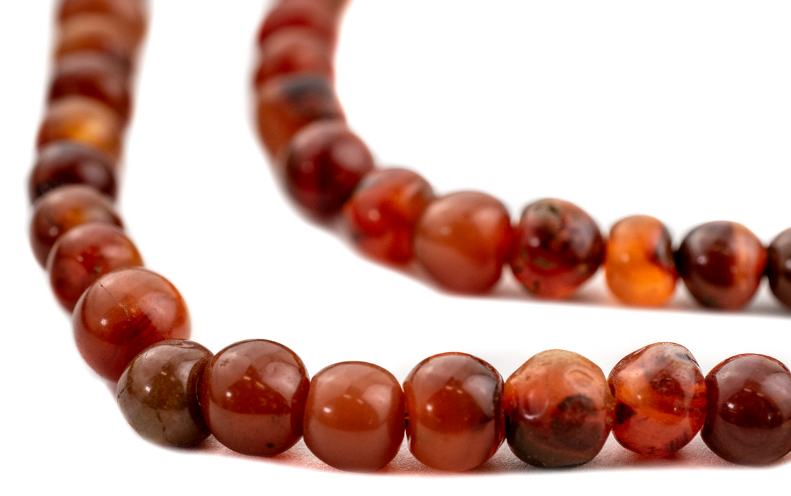 Beautiful round agate beads from Burkina Faso. Beads measures 5-9mm in diameter. Each strands shows minor variation in color and size.