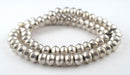 Admire these beautiful artisan white metal beads from East Africa. Modeled after traditional Mali bicone beads, these handcrafted saucer beads are of the highest quality. Each bead measures approximately 9 x 12-13mm with a hole size of 2mm. Beautiful silver color and amazing quality. Get yours today!
