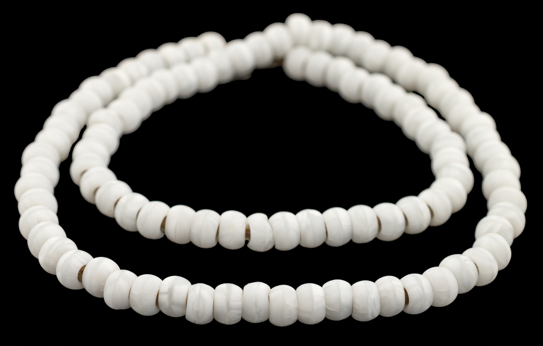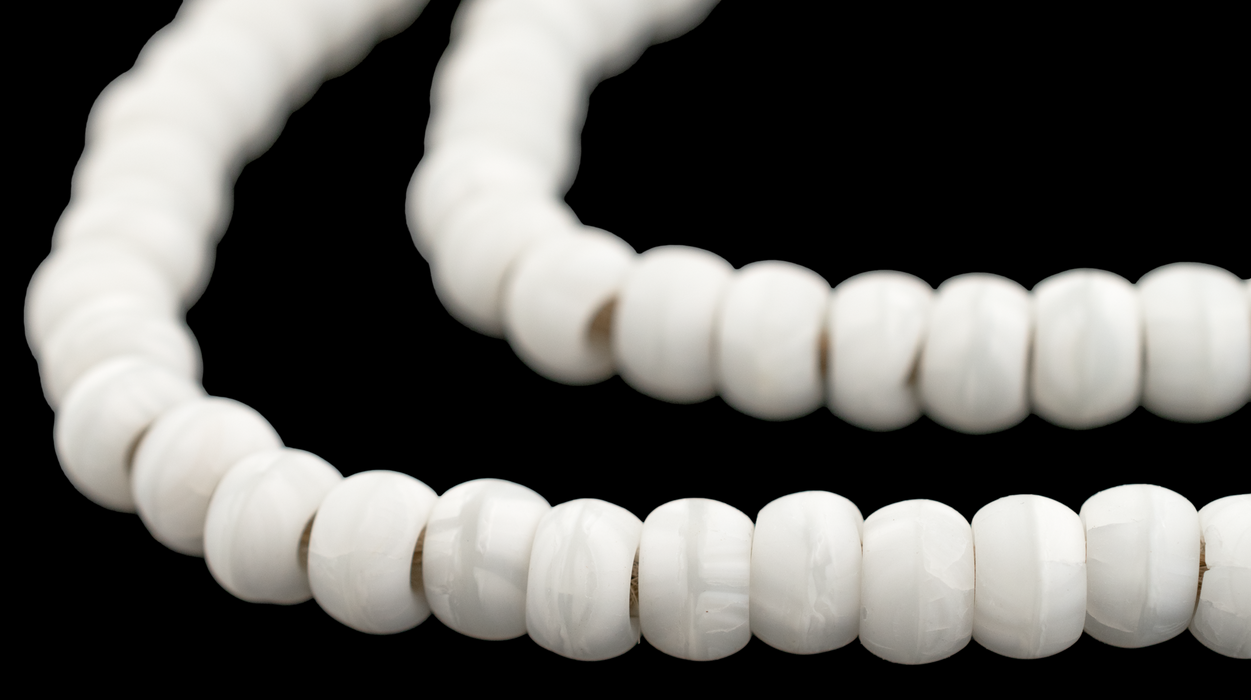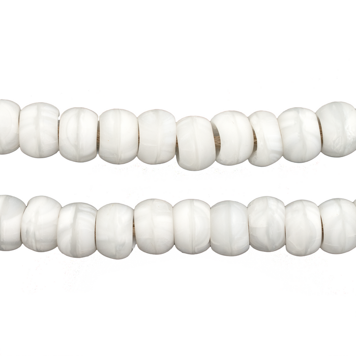 Take a closer look at these nicely crafted White Padre Beads. The marbled white patterns will add a chic and timeless look to your creative design projects. The versatile cylindrical shape makes these beads ideal for crafting intricate necklaces, bracelets, and earrings. Each bead measures approximately 6 x 9mm with a hole size of roughly 3mm. You will receive one full strand measuring about 23" in length. Grab a strand or two today.