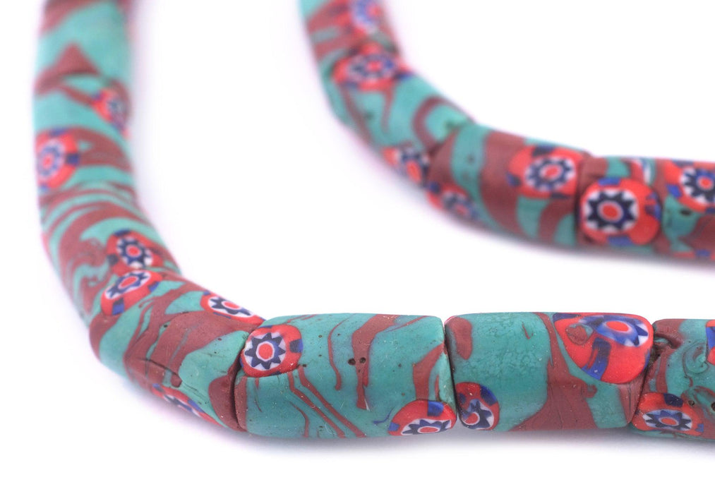 Maroon & Turquoise Antique Matching Venetian Millefiori Beads