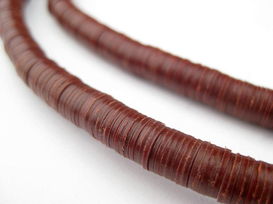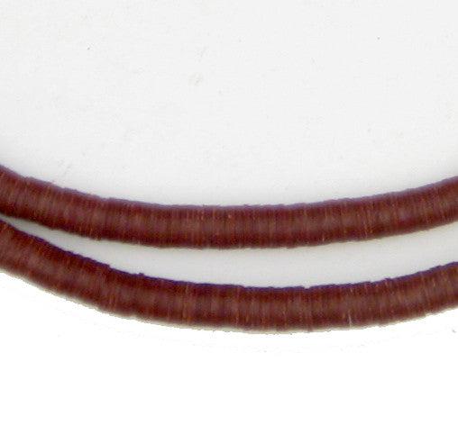 Take a look at this unusual strand of maroon color African Phono Record beads. The strand measures a whopping 37" long with beads measuring 6mm in diameter. The strand has been nicely finished on top with raffia.