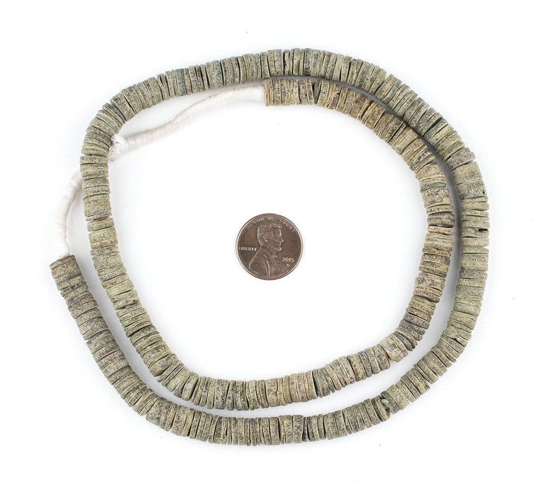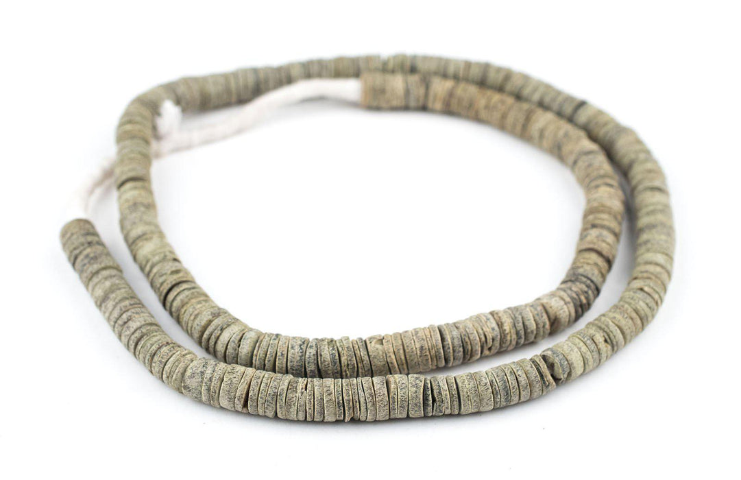 Take a look at this nice strand of heishi-shaped clay beads from West Africa. Each bead is in the shape of a flat round disk and measures approximately 2 x 8mm in size, with a hole size of 2mm. Take a close look and you will see that these beads have an ancient-style look. Each strand measures approximately 29 inches in length and has approximately 250 beads. Limited supply available. Get yours today!