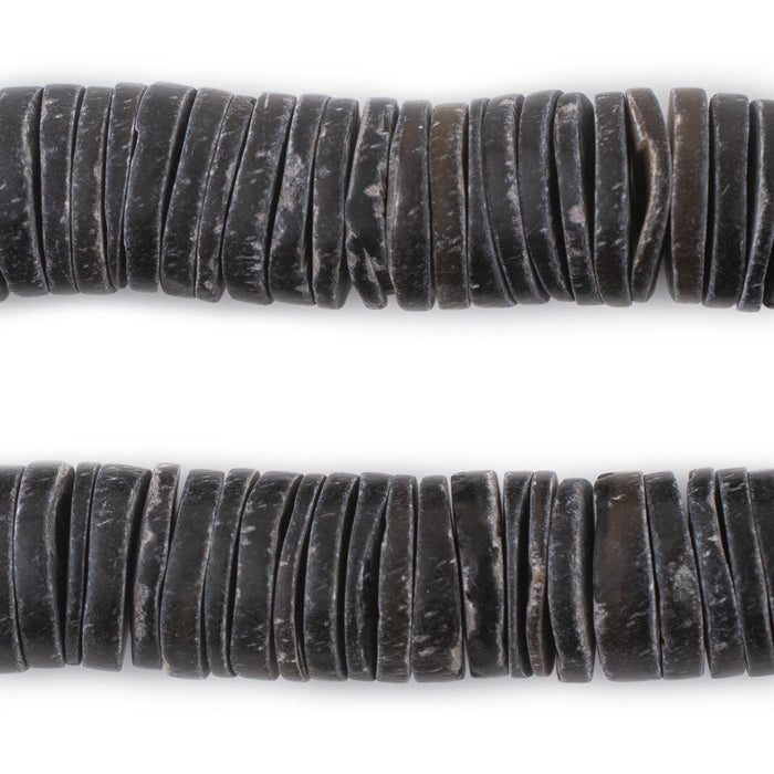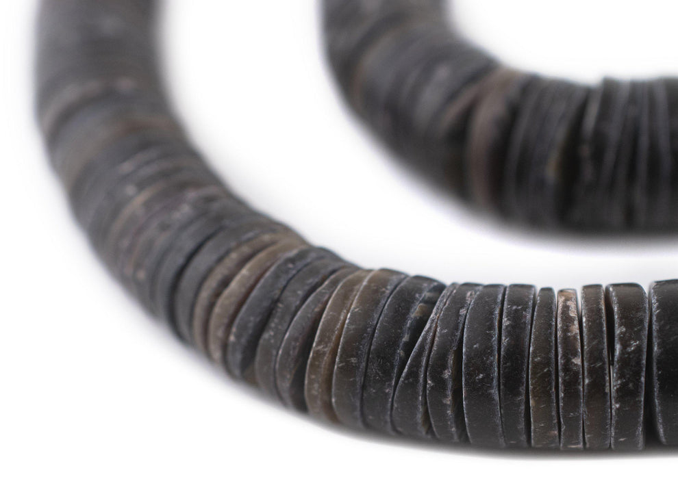 These amazing Matte Black Heishi Beads are made from Natural Sea Shells. The chunky oversized shape of these beads makes them a perfect candidate for a fun spacer bead in custom necklace and bracelet designs. Every strand is about 16" in length. Each artisan bead is approximately 2-4 x 16mm with a 1mm hole. Get yours today!