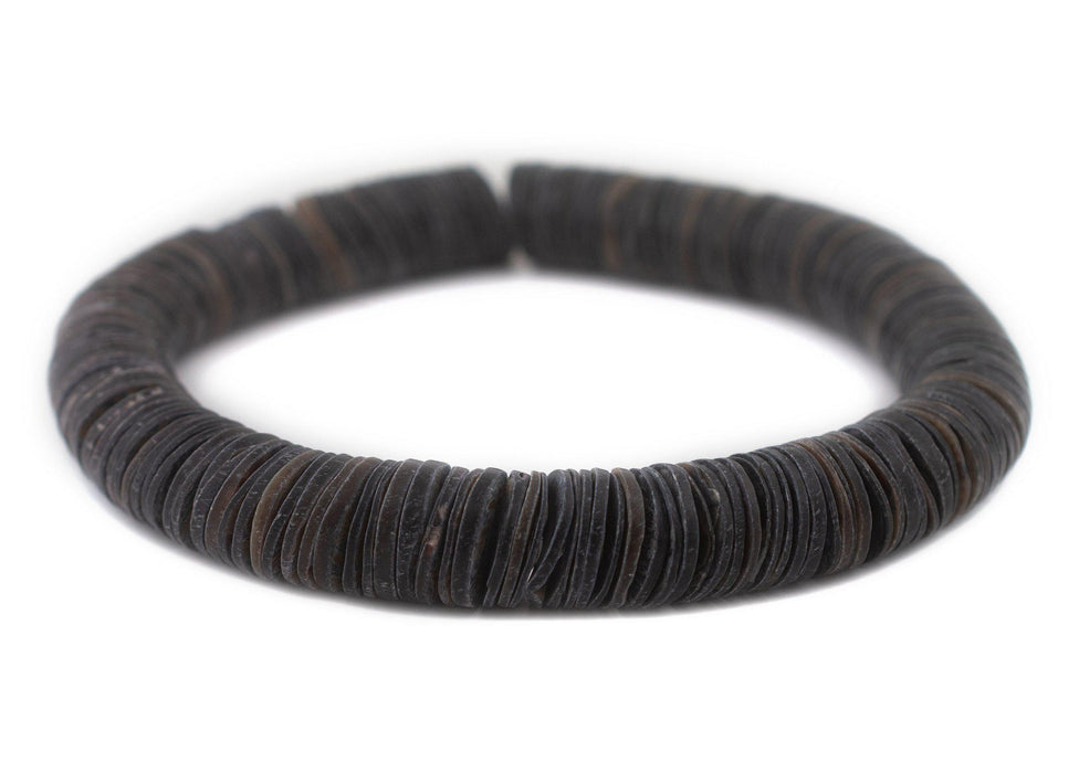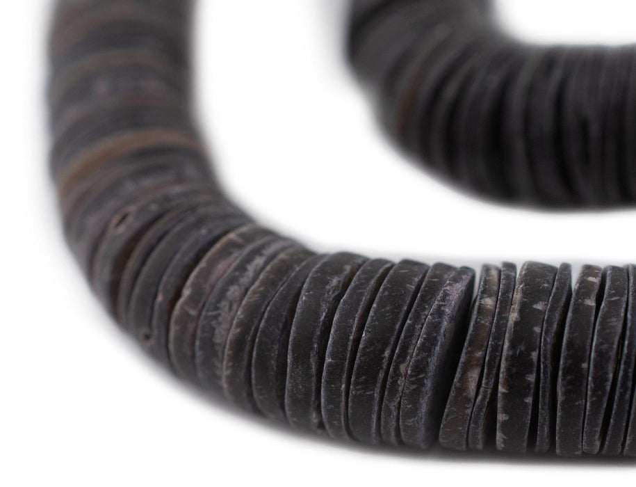 Admire these beautiful natural sea shell heishi beads, made to resemble traditional African coconut shell trade beads. These beads come in a natural matte black finish, and are durable for high quality jewelry that will last! Each strand measures a generous 16" long with beads measuring approximately 2-4 x 20mm in size, with a 1mm hole size. Beautiful rustic sea shell beads at a great price!