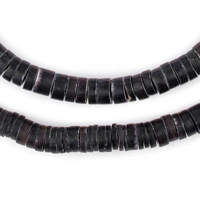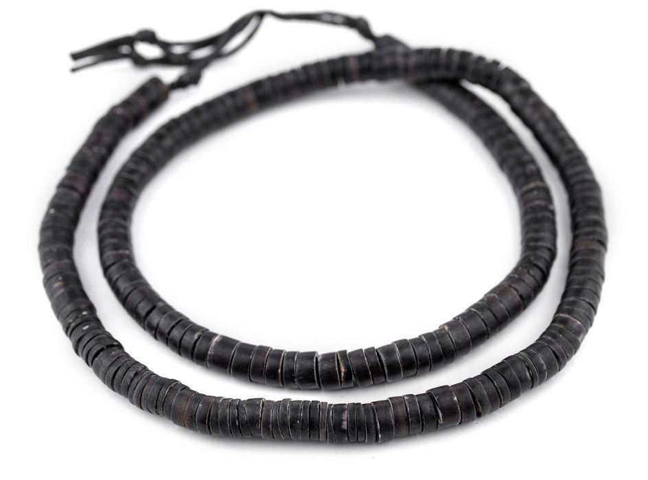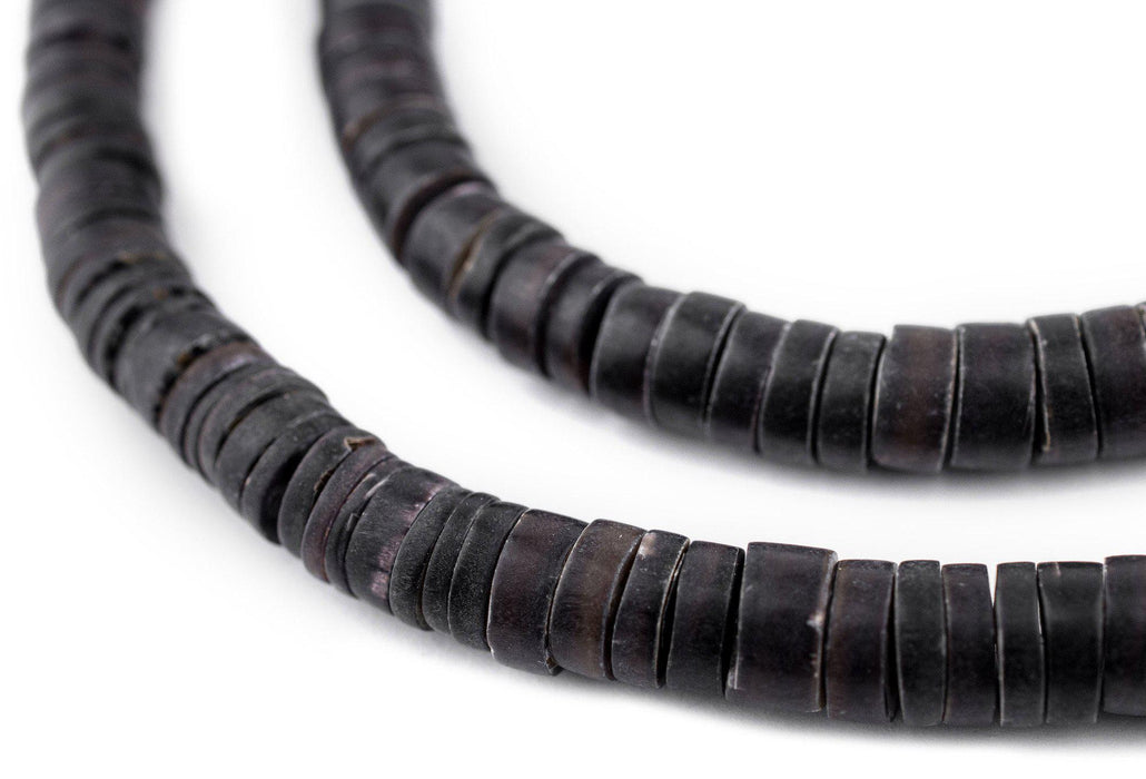 Admire these beautiful natural sea shell heishi beads, made to resemble traditional African coconut shell trade beads. These beads come in a natural matte black finish, and are durable for high quality jewelry that will last! Each strand measures a 24" long with beads measuring approximately 1-5 x 8mm in size, with a 1mm hole size. Beautiful rustic sea shell beads at a great price!