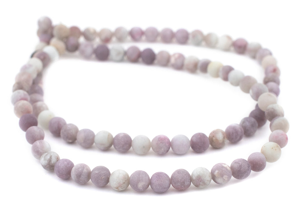 Lilac jade, often referred to as lavender jade, is a gentle purple stone that is considered in some forms of eastern medicine to have special medicinal properties. Also known as a stone of compassion, this mineral has a unique muted purple tone blended with organic hues. Each bead measures approximately 8 x 8mm with a hole size of approximately 1mm. You will receive a full strand measuring approximately 16".