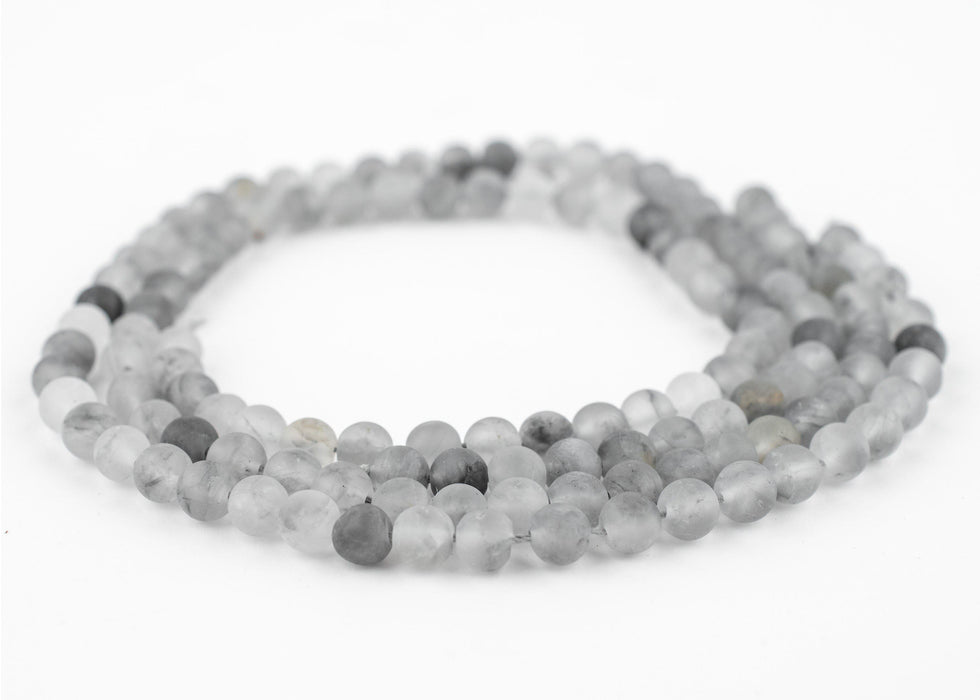Indulge your eyes in these beautiful cloudy quartz beads in a natural frosted finish. These delightful gemstone beads measure approximately 6 x 6mm, with holes measuring 1mm. Each strand is approximately 15" long. Like other quartz gems, cloudy quartz is a form of crystal and is considered by some to have therapeutic properties. Multiple strands pictured. Each strand sold individually. Add these beads to your collection today!