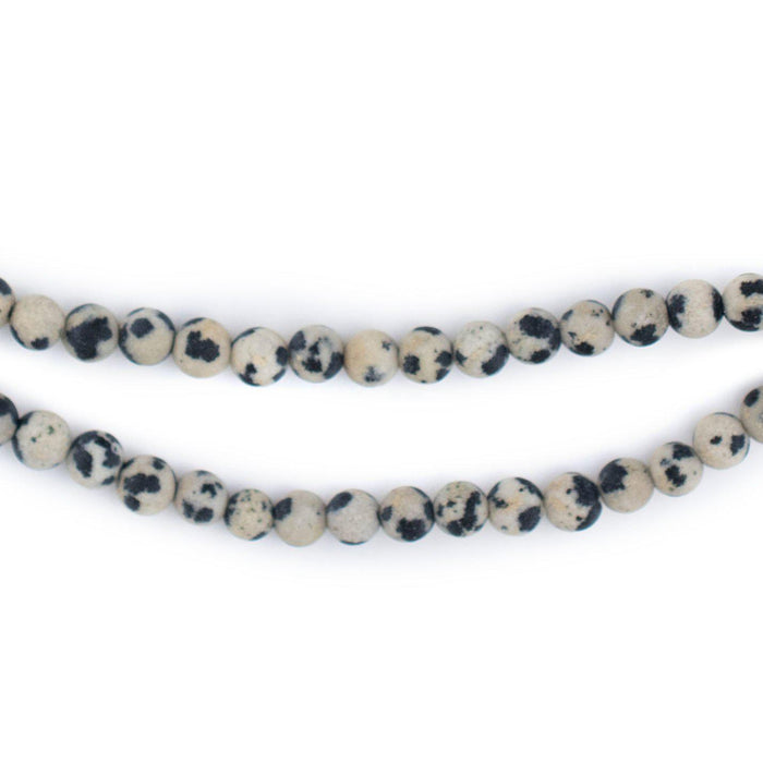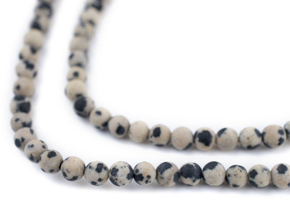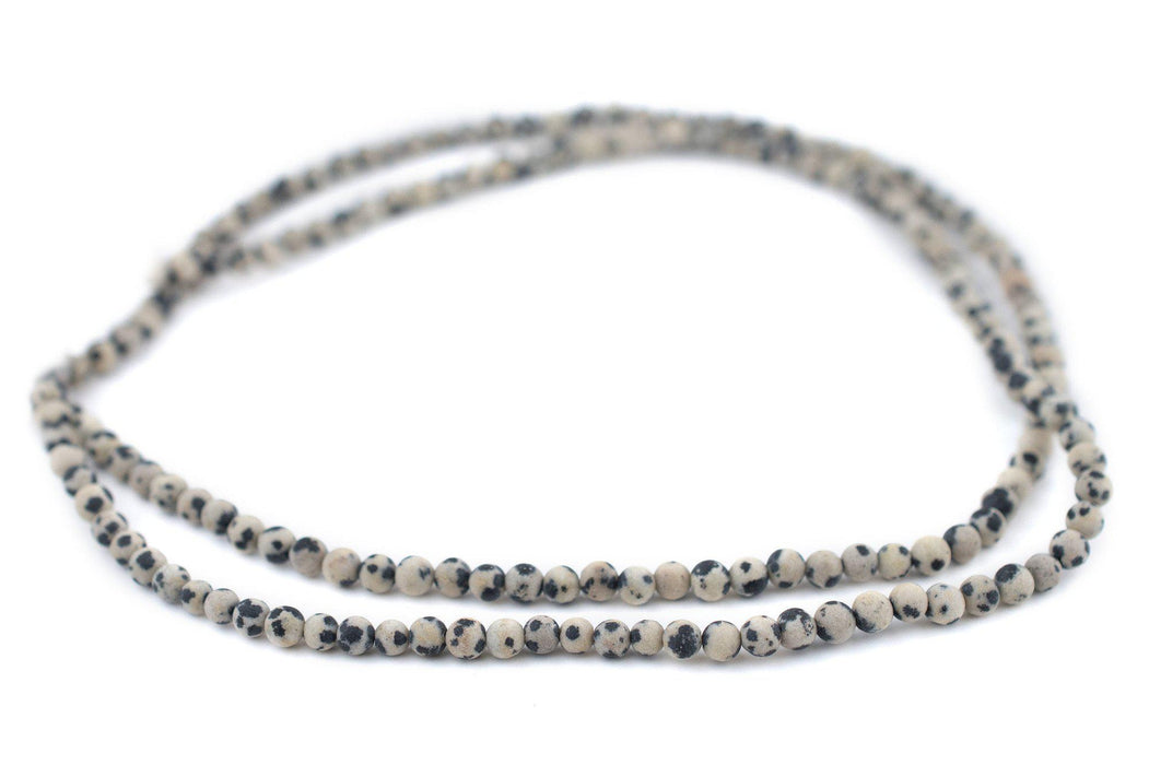 Dalmatian jasper is a beautiful black spotted stone that is said to help break down barriers in one's life. These beautiful matte round beads measure approximately 4 x 4-5mm with a hole size of approximately 1mm. Each strand measures approximately 16" in length. Multiple strands may be pictured. Each strand sold individually. Get yours today!