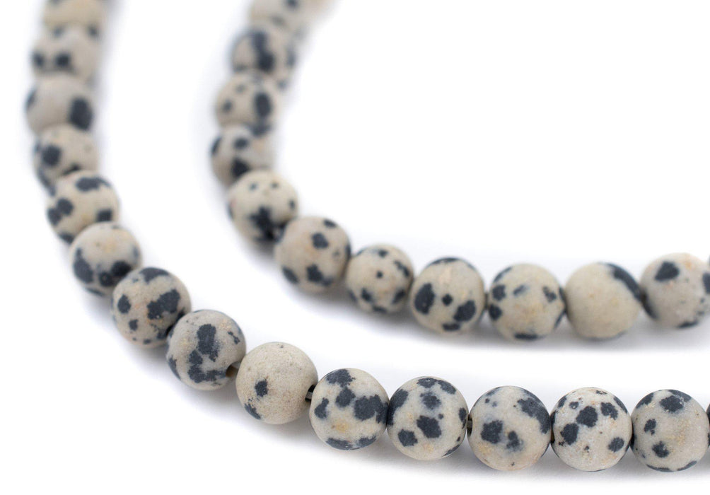 Dalmatian jasper is a beautiful black spotted stone that is said to help break down barriers in one's life. These beautiful matte round beads measure approximately 6 x 6mm with a hole size of approximately 1mm. Each strand measures approximately 16" in length. Multiple strands may be pictured. Each strand sold individually. Get yours today!