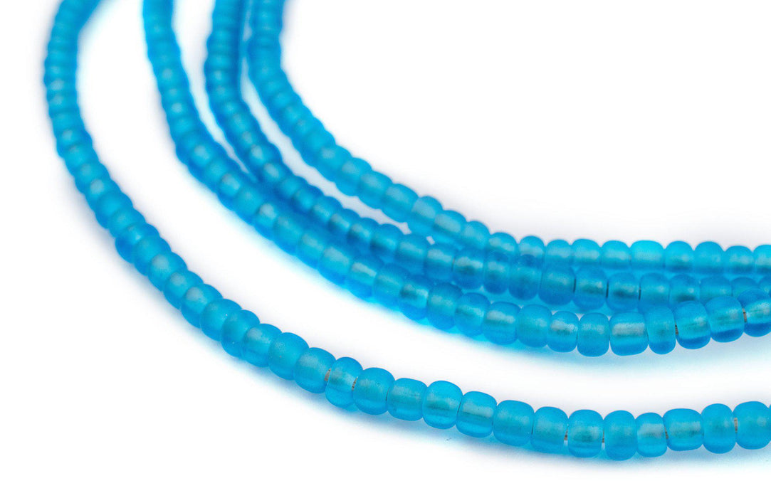 Matte Translucent Sea Blue Ghana Glass Seed Beads (4mm)