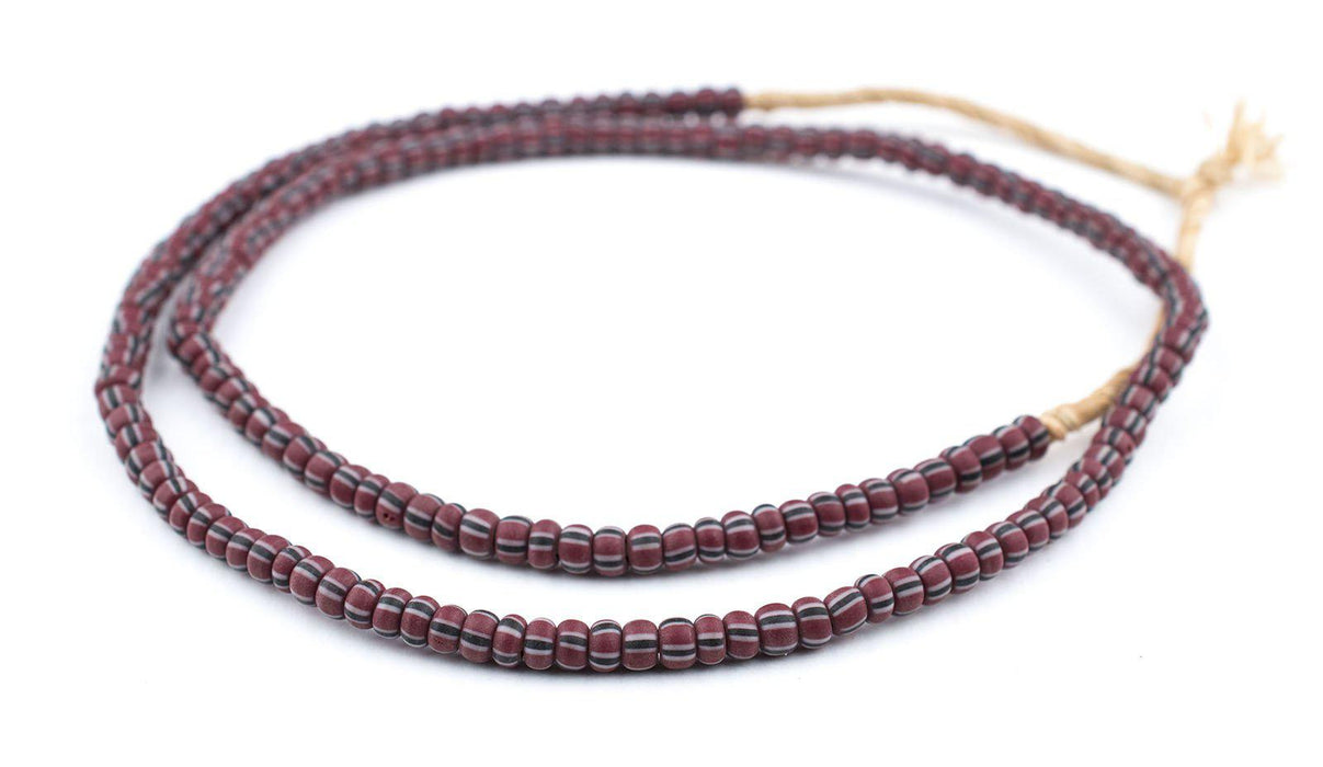 Checkout this nice strand of Glass Chevrons from Ghana, Africa. Matted chevron beads such as these are harder to find. Each strand measures approximately 24-25" in length, with beads measuring approximately 5mm in diameter.