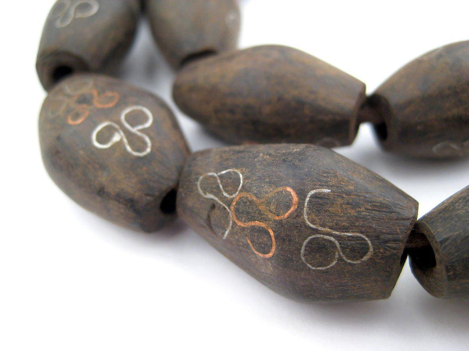 Mauritanian Inlaid Ebony Wood Bicone Beads (26x15mm)