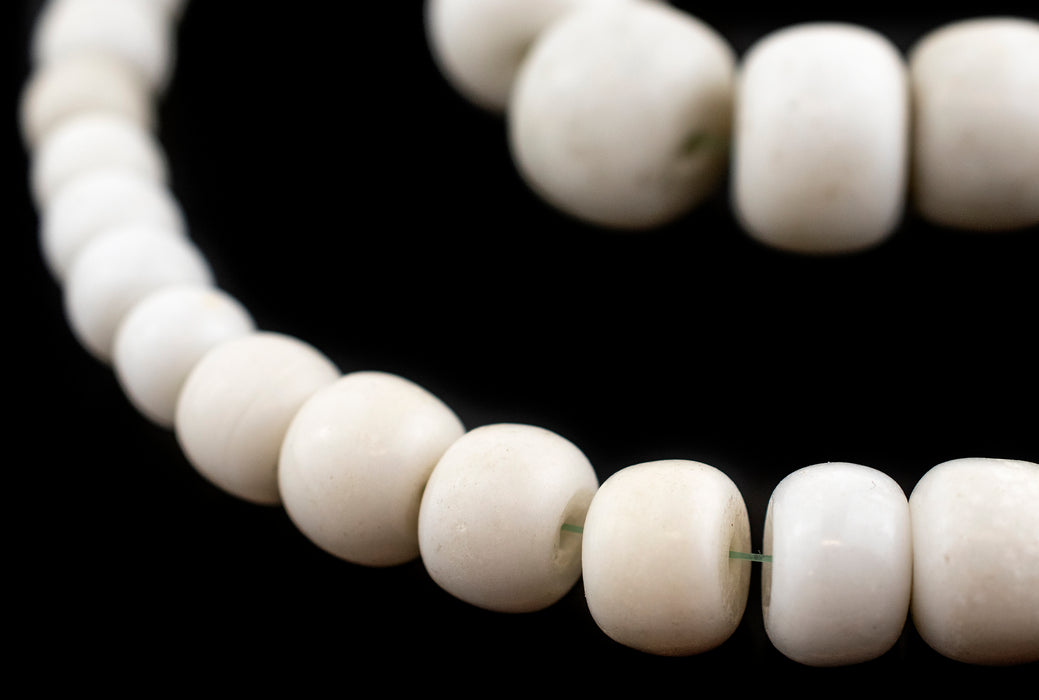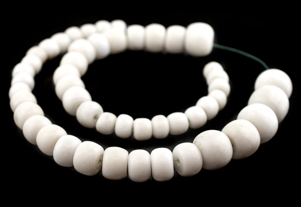 Take a moment to admire these stunning white marble beads. These stone beads come to us from the South American Country of Guatemala. Guatemalan Stone is renown for its lovely texture. These marble would beads even look great when worn as is as a simple necklace. Each bead measures approximately 8-15 x 10-20mm, with a hole size of approximately 1-2mm. You will receive one strand measuring approximately 27". There are around 49 beads on each strand. Grab this unique beaded strand for yourself today!