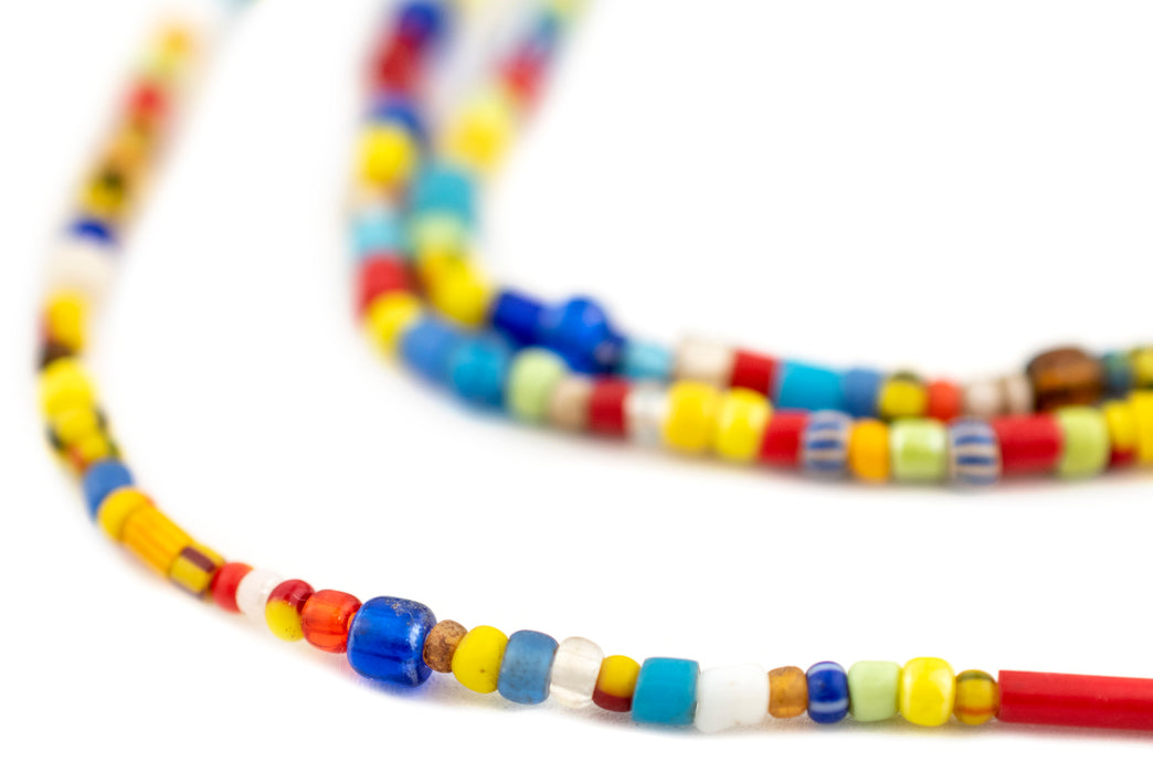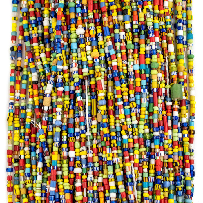 Christmas beads comprise of a special blend of choice beads created in former Czechoslovakia for use in Africa. Also known as "African love beads," each strand is 100% unique; no two strands are alike. Please take note: these beads are authentic vintage production, unlike modern replicas which are widely available in the market today. These fun beads can either be used for your own beaded creations, or worn as is. Traditionally, multiple strands are worn at once. Available in a variety of sizes and styles. Multiple strands pictured. Each strand sold individually. This bead is being sold as a linear strand, not tied as a loop. May be used as waist beads but note that the strand is not finished with a clasp. Get yours today!