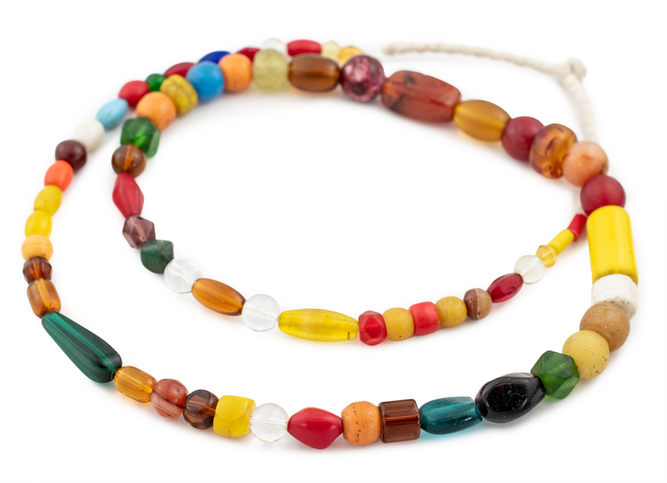 Discover the rich history and vibrant charm of our Medley of Vintage Czech Beads. These unique beads, originally crafted in the renowned glass workshops of the Czech Republic, have journeyed through Africa, passing through the hands of traders and artisans before being beautifully strung in The Gambia. Each strand tells a story, blending old-world craftsmanship with cultural heritage, making them a stunning addition to any jewelry design or collection. Each bead measures approximately 9-35 x 8-17mm with a hole size of approximately 1-2mm. You will receive a full strand measuring approximately 26".