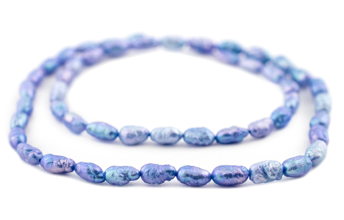 Mermaid Blue Vintage Japanese Rice Pearl Beads (5mm)