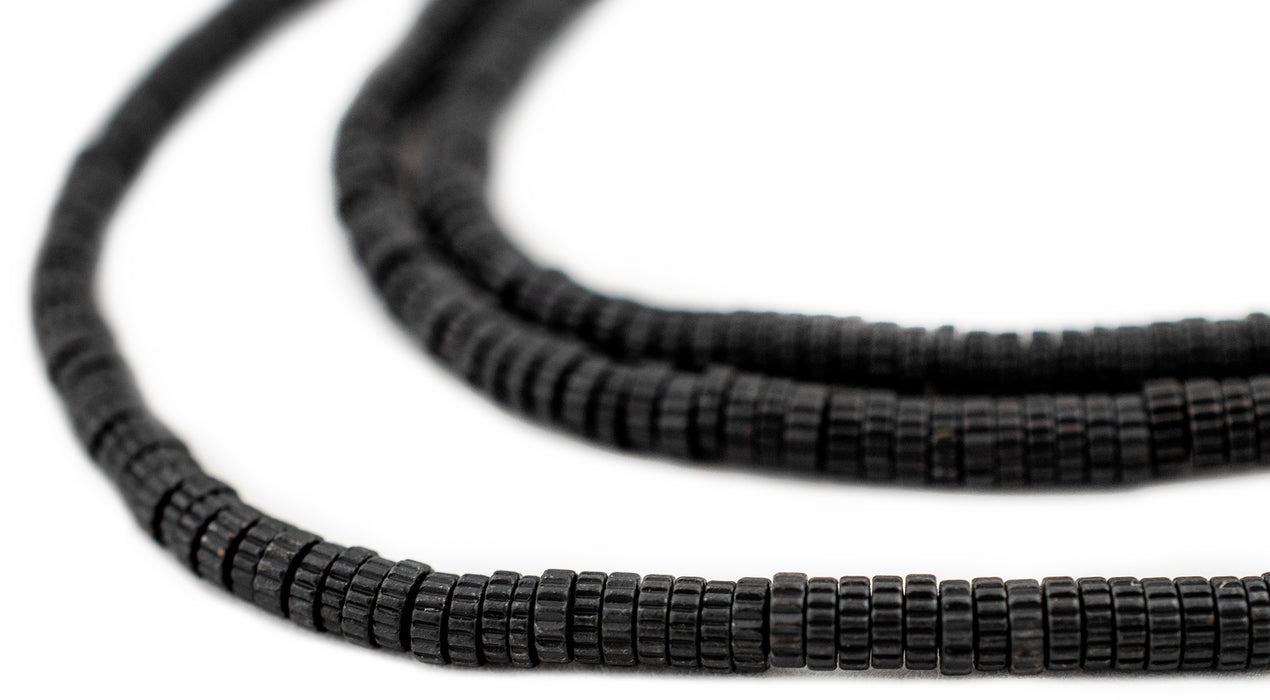 These Black Engraved Gear Beads are perfect for creating a unique and stylish look. Crafted from brass, these beads have a useful heishi shape, making them perfect for stacking or incorporating them into more intricate designs. Each bead has a unique gear like pattern that helps create a bold statement. Each bead measures about 1 x 3mm with a hole size of approximately 1mm. You will receive a full strand measuring approximately 24" in length. With a consistent size and finish, these Patterned Gear Beads are a great addition to any design kit.