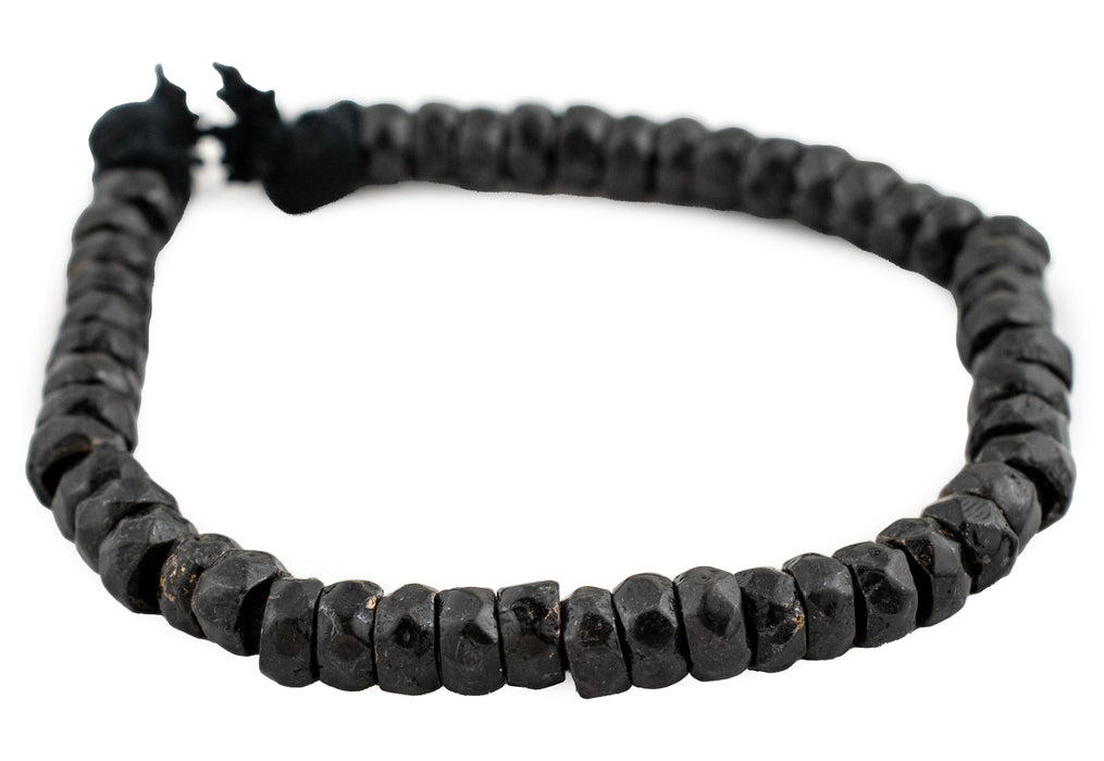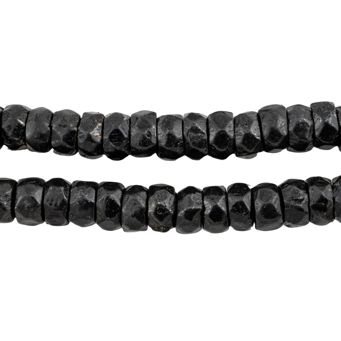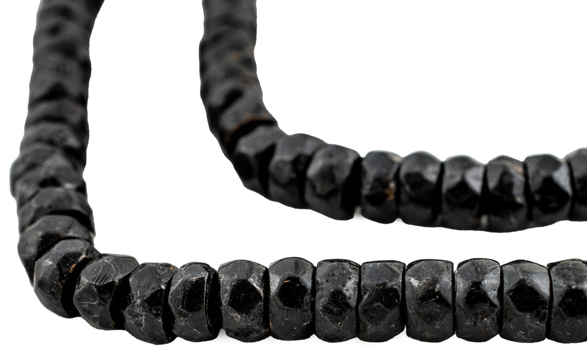 Brass beads nicely finished in a lustrous black finish. The faceted cylinder shape is unique as it is unusual. The hole size measures a generous 5mm and is suitable for stringing on a thick cord or leather strap with each bead measuring 4mm wide x 8mm diameter. Each strand measures approximately 9" in length.