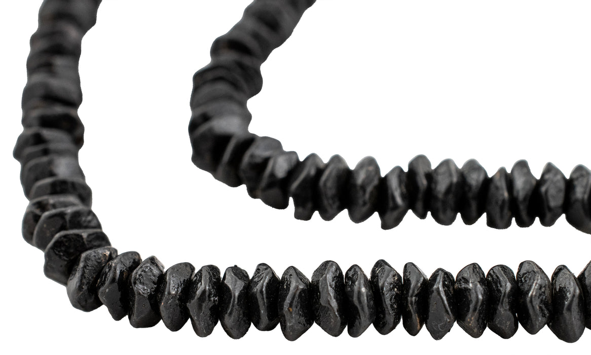 These Rounded Metal Beads are the perfect addition to any jewelry design kit. Crafted from brass and featuring an intense black finish each beads exude luxury with their reflective facets and classic faceted nugget shape. These sleek beads are sure to make a statement when used as accents on jewelry designs. Each bead measures approximately 3 x 7mm with a hole size of about 3mm. You will receive a full strand measuring roughly 8.5". Grab a few for yourself today.
