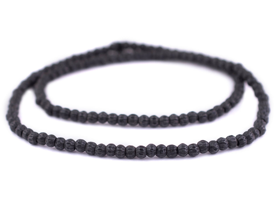 Beautiful strand of high quality, black beads measuring 24" in length. Individual beads measure 4 x 5mm in size, with holes measuring approximately 1mm. Each strand includes approximately 135 beads. These highly versatile beads make great spacers, or may be used to accent your unique beaded designs. Feel the solid weight of these beads in your hands, and you'll surely appreciate their fine quality. This artisan product is made using premium copper electroplating over brass to make these copper finish customer favorites.