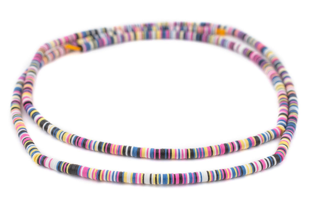 Take a look at this beautiful strand of African vinyl beads. Beads such as these are found in Ghana and Nigeria where they are sometimes worn as waist beads. Older versions of vinyl beads were said to be made from recycled phonograph records. This strand measures approximately 35" with individual beads measuring approximately 1 x 4mm. These beads are light, fun to wear and also versatile for jewelry designs. Each strand is sold individually.