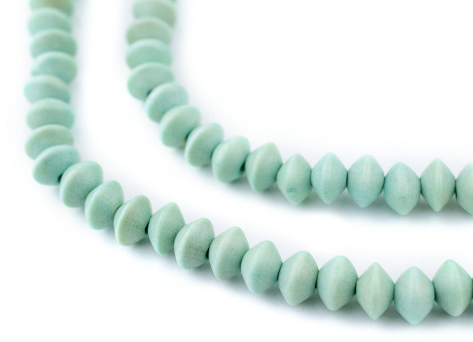 Mint Green Bicone Natural Wood Beads (5x8mm)