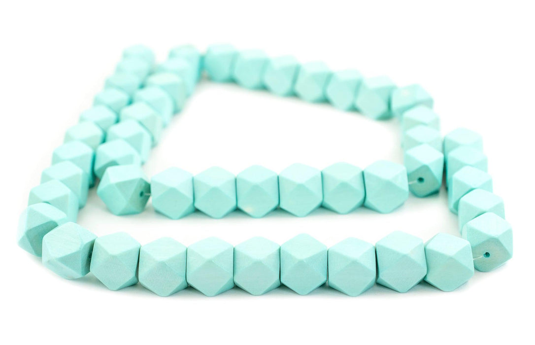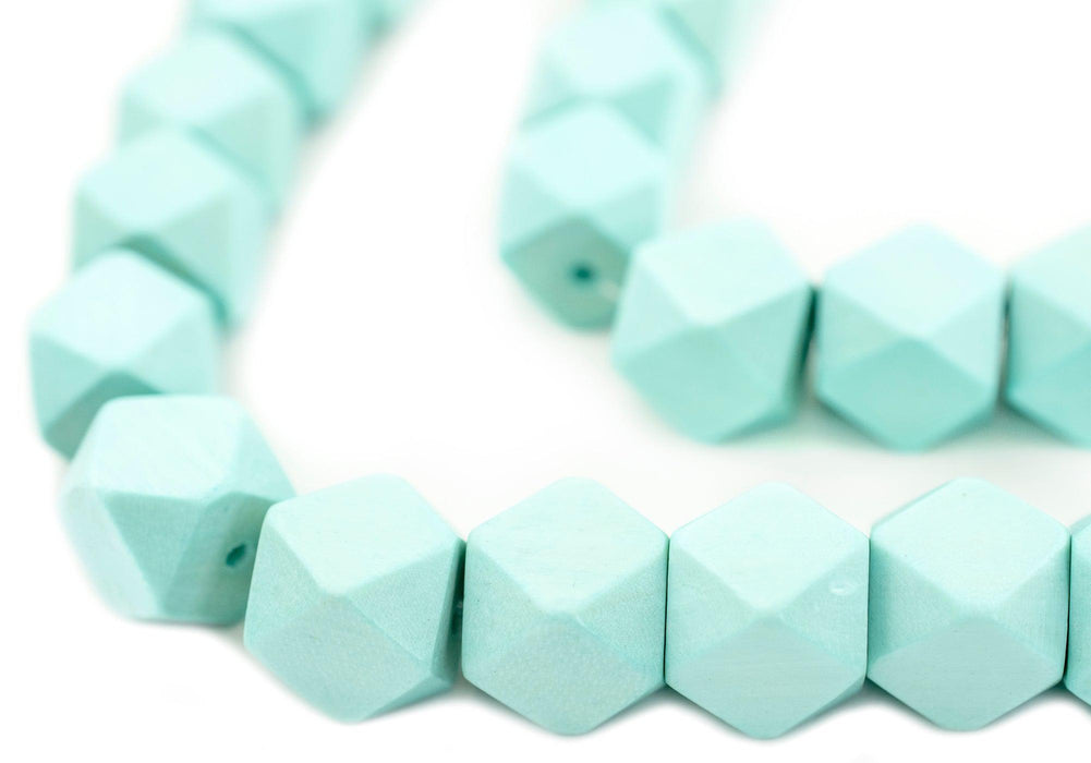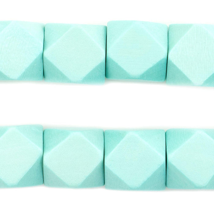 Mint Green Diamond Cut Natural Wood Beads (17mm)