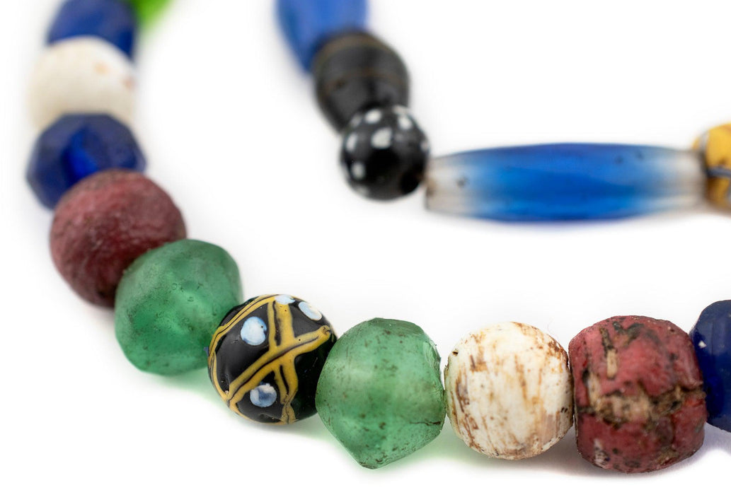 Looking for a truly unique strand of antique mixed trade beads? Then look no further. This beautiful strand of old african trade beads contains a medley of hard to find beads. Each strand is unique but strands may include special beads including Bodom beads, Murano Red good beads, Millefiore, Red white and blue beads, French cross, King beads, Old powder glass beads, Dog tooth beads, Cornaline d'Aleppo Venetian Trade Beads, Russian Blue, Floral Venetian Beads, and many other unusual varieties of old African Trade Beads. These beads are for the designer and collector alike. You will receive the exact strand pictured. Some beads may be cracked and/or show signs of age. These mixed beads are truly exceptional!