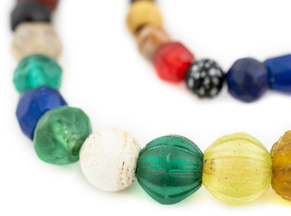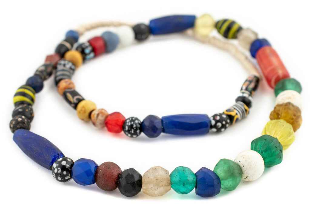 Looking for a truly unique strand of antique mixed trade beads? Then look no further. This beautiful strand of old african trade beads contains a medley of hard to find beads. Each strand is unique but strands may include special beads including Bodom beads, Murano Red good beads, Millefiore, Red white and blue beads, French cross, King beads, Old powder glass beads, Dog tooth beads, Cornaline d'Aleppo Venetian Trade Beads, Russian Blue, Floral Venetian Beads, and many other unusual varieties of old African Trade Beads. These beads are for the designer and collector alike. You will receive the exact strand pictured. Some beads may be cracked and/or show signs of age. These mixed beads are truly exceptional!