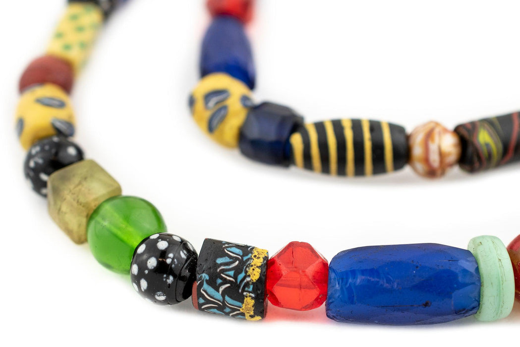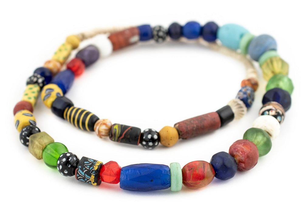 Looking for a truly unique strand of antique mixed trade beads? Then look no further. This beautiful strand of old african trade beads contains a medley of hard to find beads. Each strand is unique but strands may include special beads including Bodom beads, Murano Red good beads, Millefiore, Red white and blue beads, French cross, King beads, Old powder glass beads, Dog tooth beads, Cornaline d'Aleppo Venetian Trade Beads, Russian Blue, Floral Venetian Beads, and many other unusual varieties of old African Trade Beads. These beads are for the designer and collector alike. You will receive the exact strand pictured. Some beads may be cracked and/or show signs of age. These mixed beads are truly exceptional!